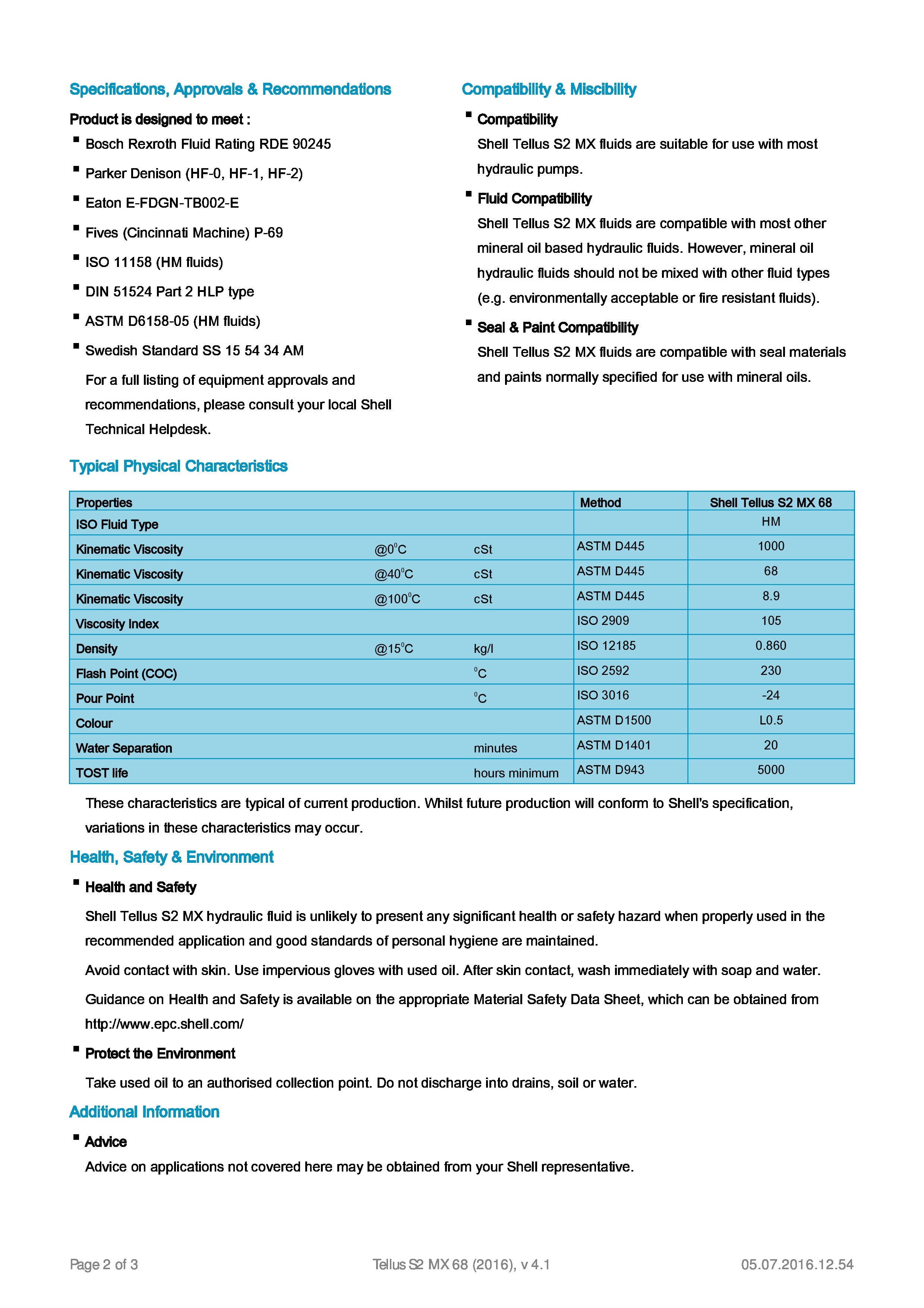 Shell Tellus S2 MX 68 - Hydraulic Oil
